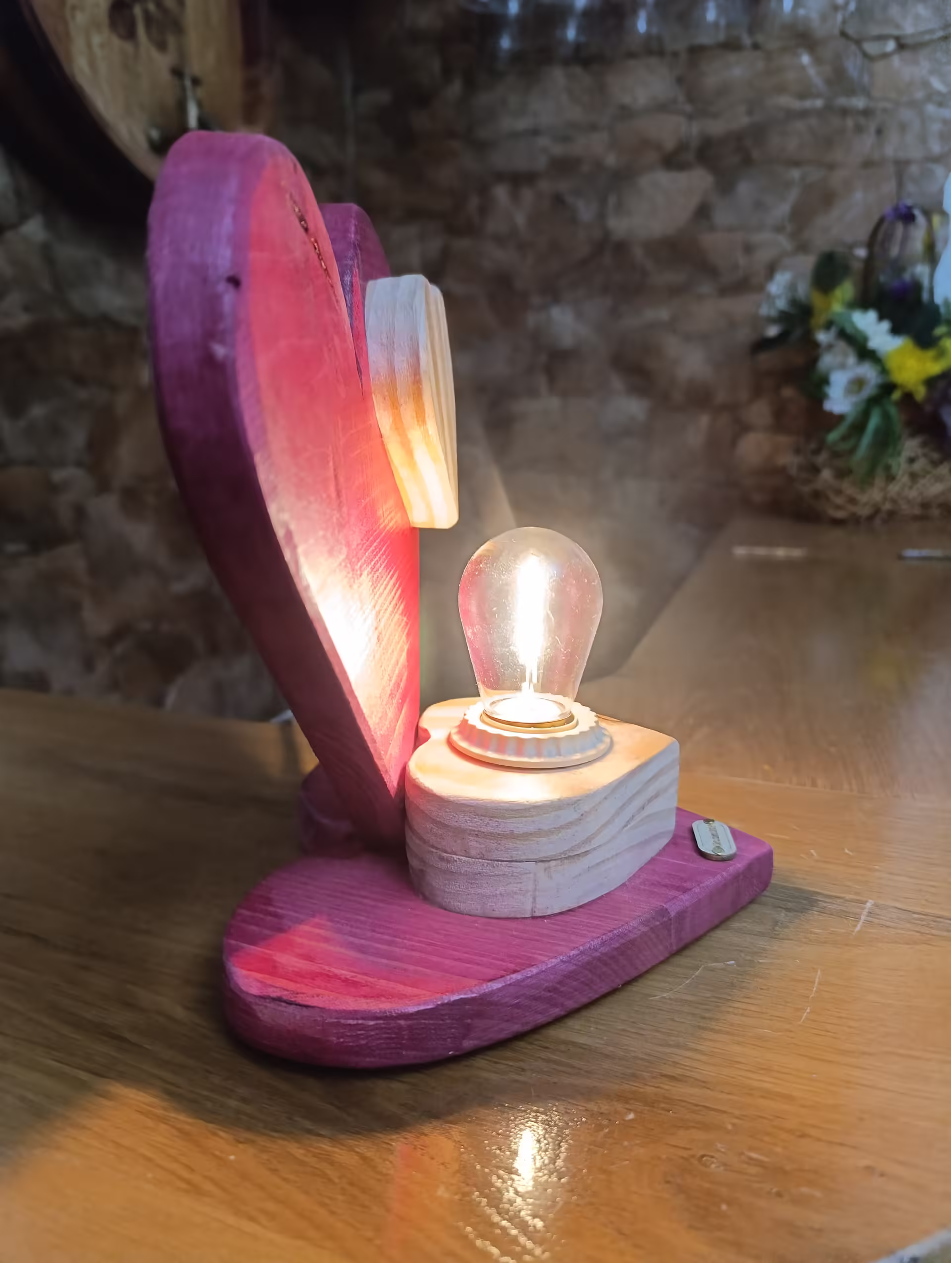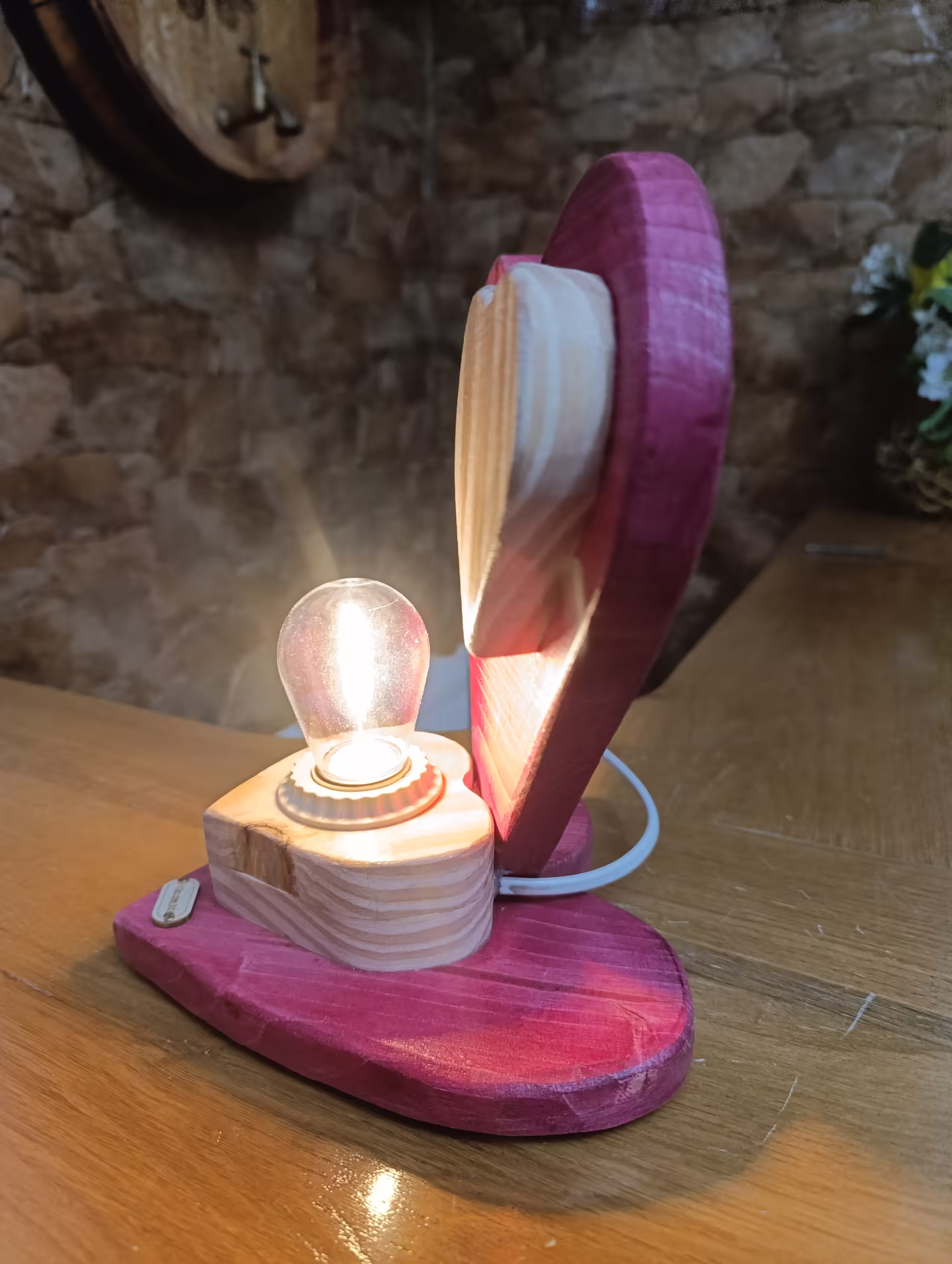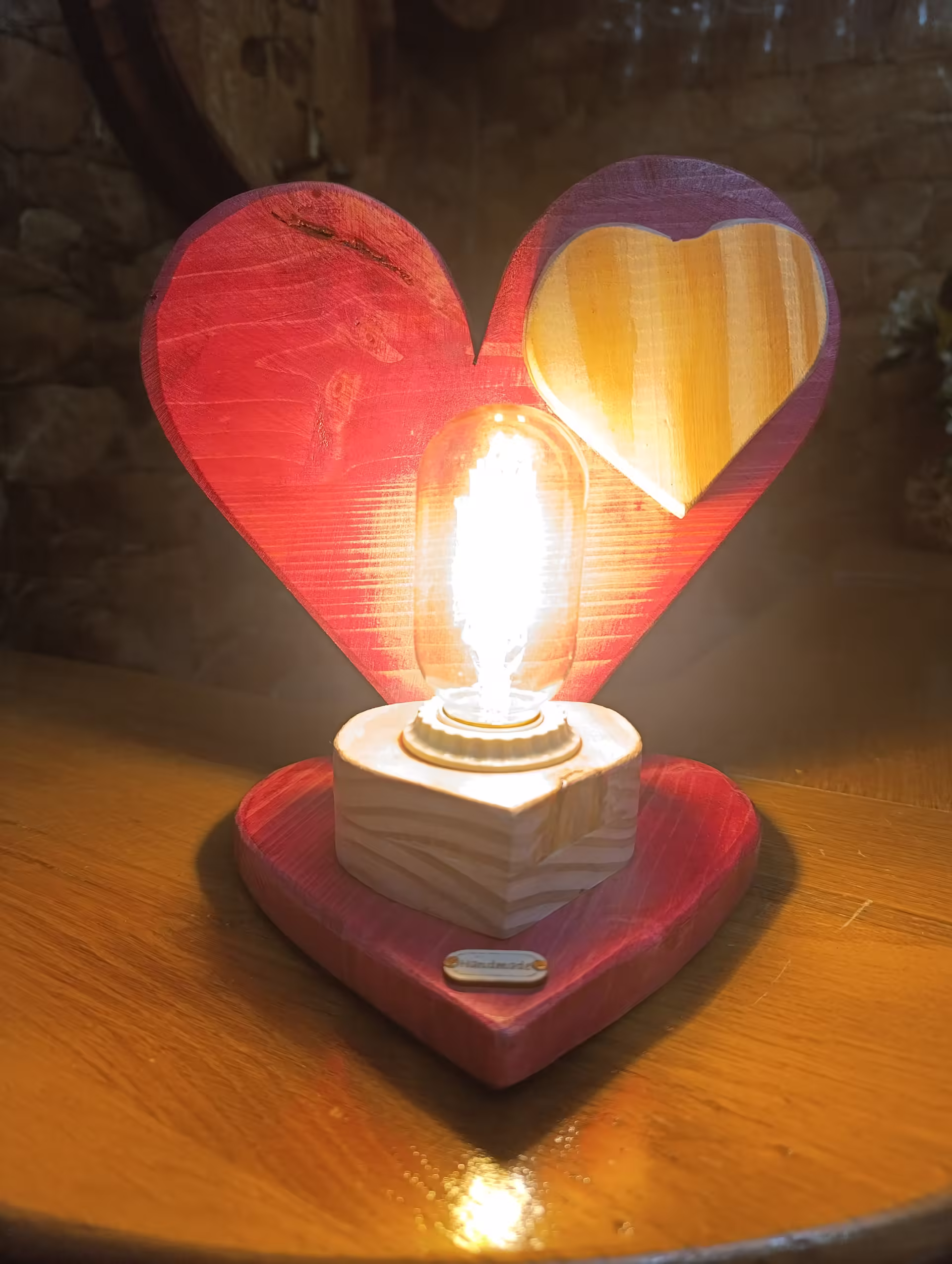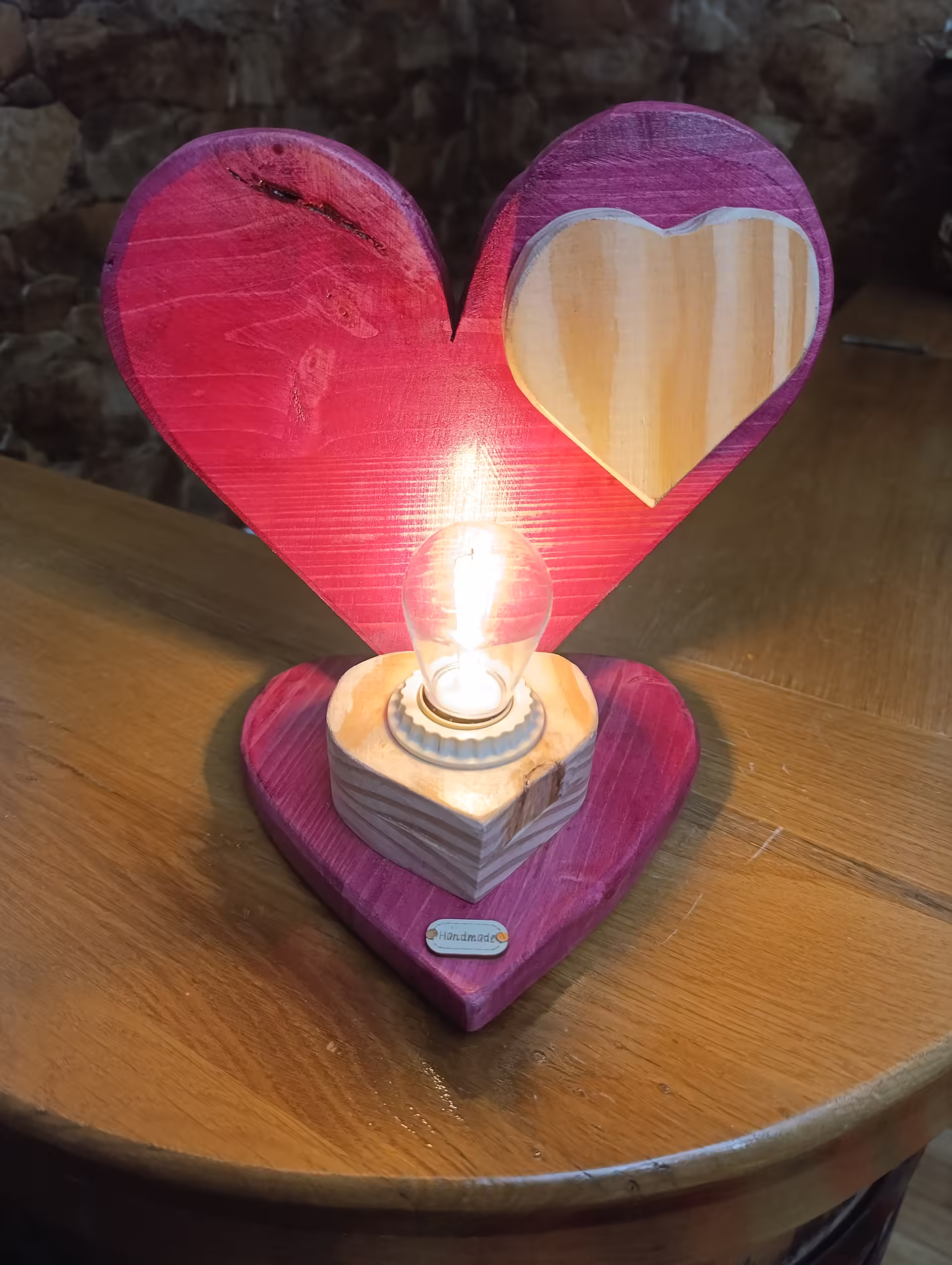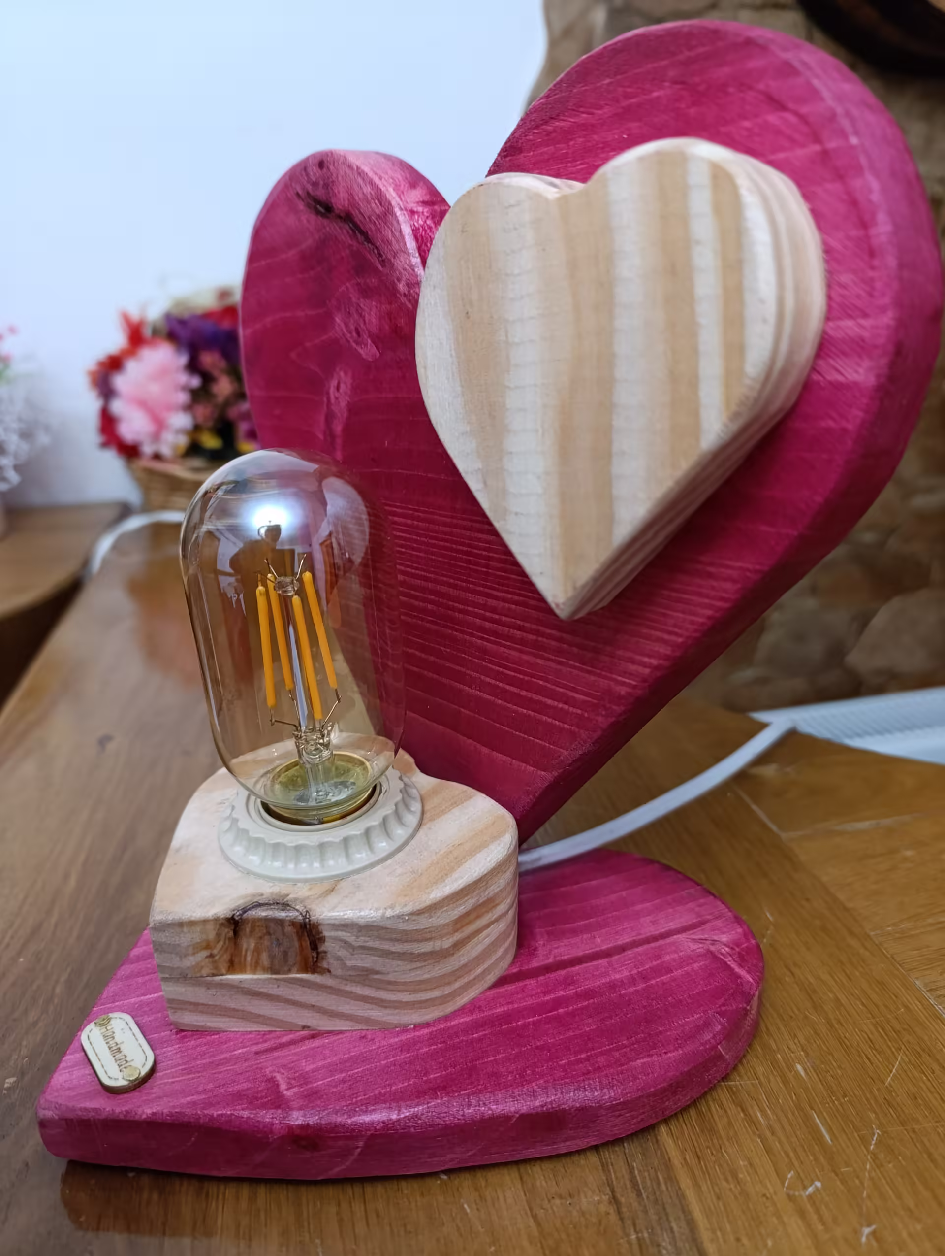 Lampă rustică din lemn-4 de inimă roșie
