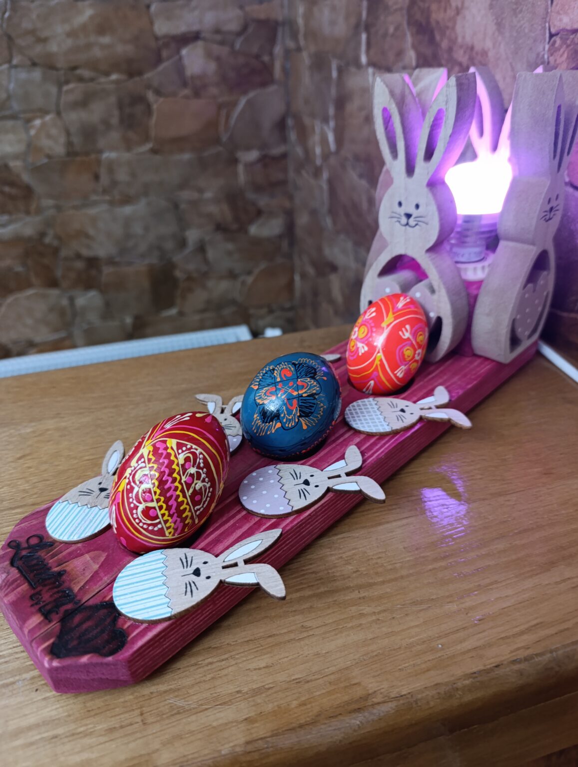Pentru că se apropie sărbatorile pascale Luminar vă prezintă un alt platou pentru ouă colorate .Rilă strajuiește ouăle și le scoate în evidență culorile luminându-le cu un bec Rgb