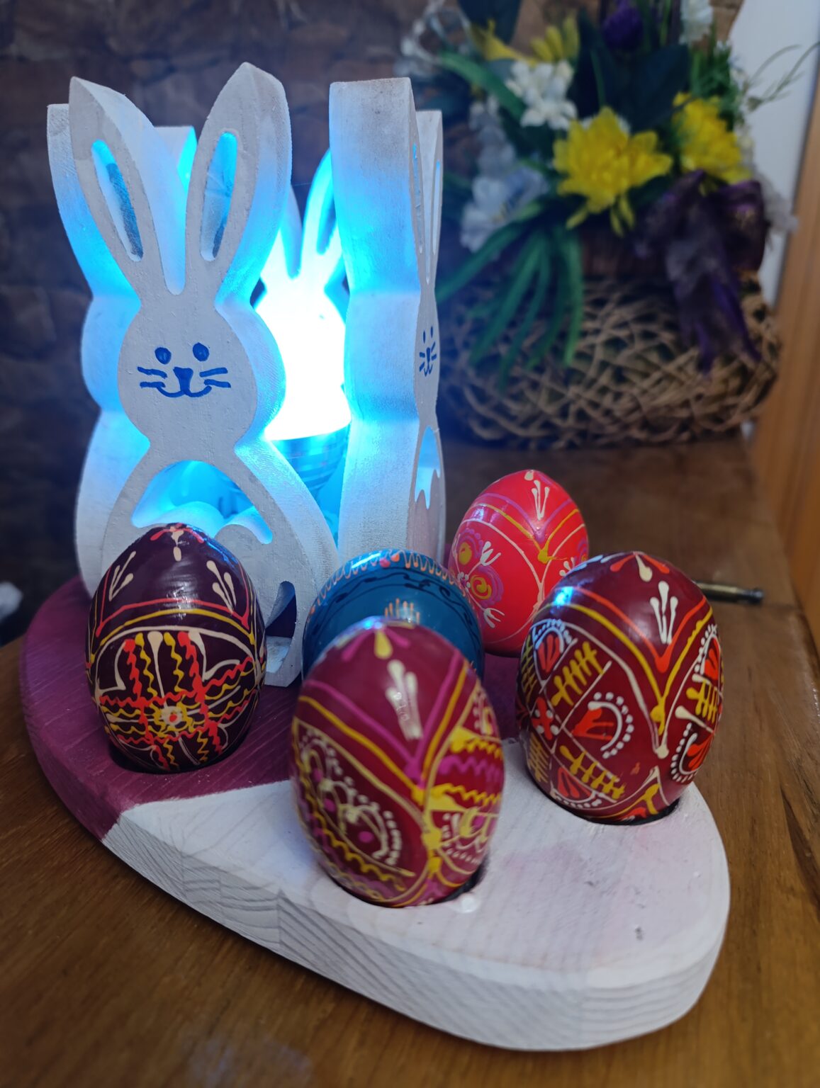 Pentru că se apropie sărbatorile pascale Luminar vă prezintă un platou pentru ouă colorate .Rilă strajuiește ouăle și le scoate în evidență culorile luminându-le cu un bec Rgb